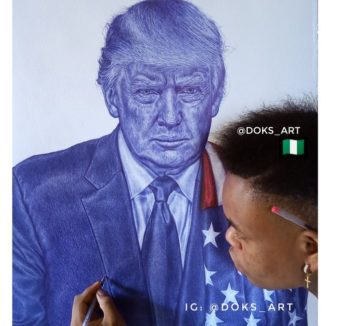 This is my second portrait of President Trump. This time I really want him to see it. All done in ballpoint, took up to 70hours, ’24×21′ inches.