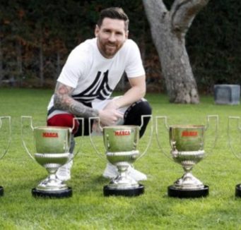 Lionel Messi Shows Off Five Pichichi Titles
